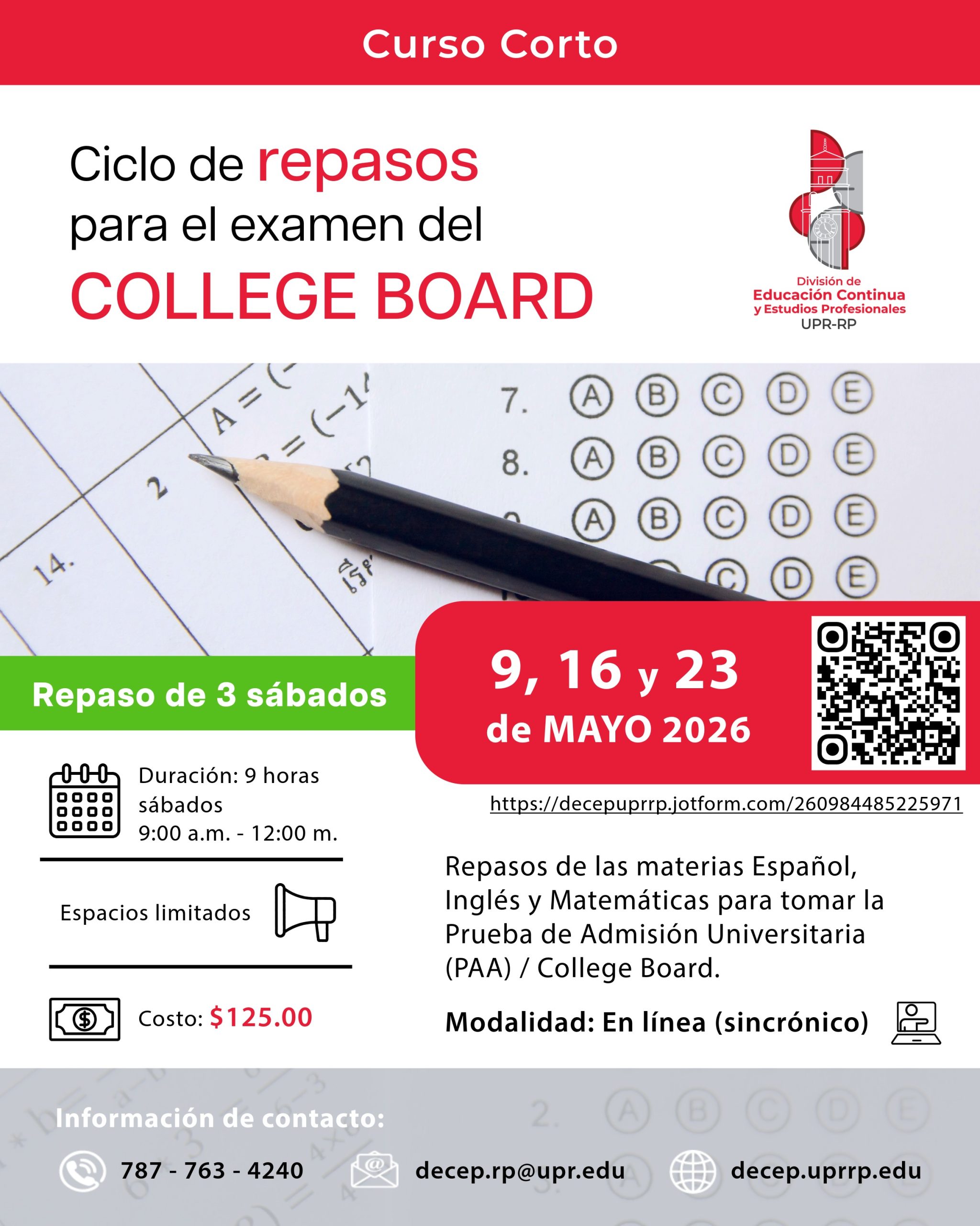 Repaso de español, inglés y matemáticas para tomar la Prueba de Admisión Universitaria (PAA) / College Board.