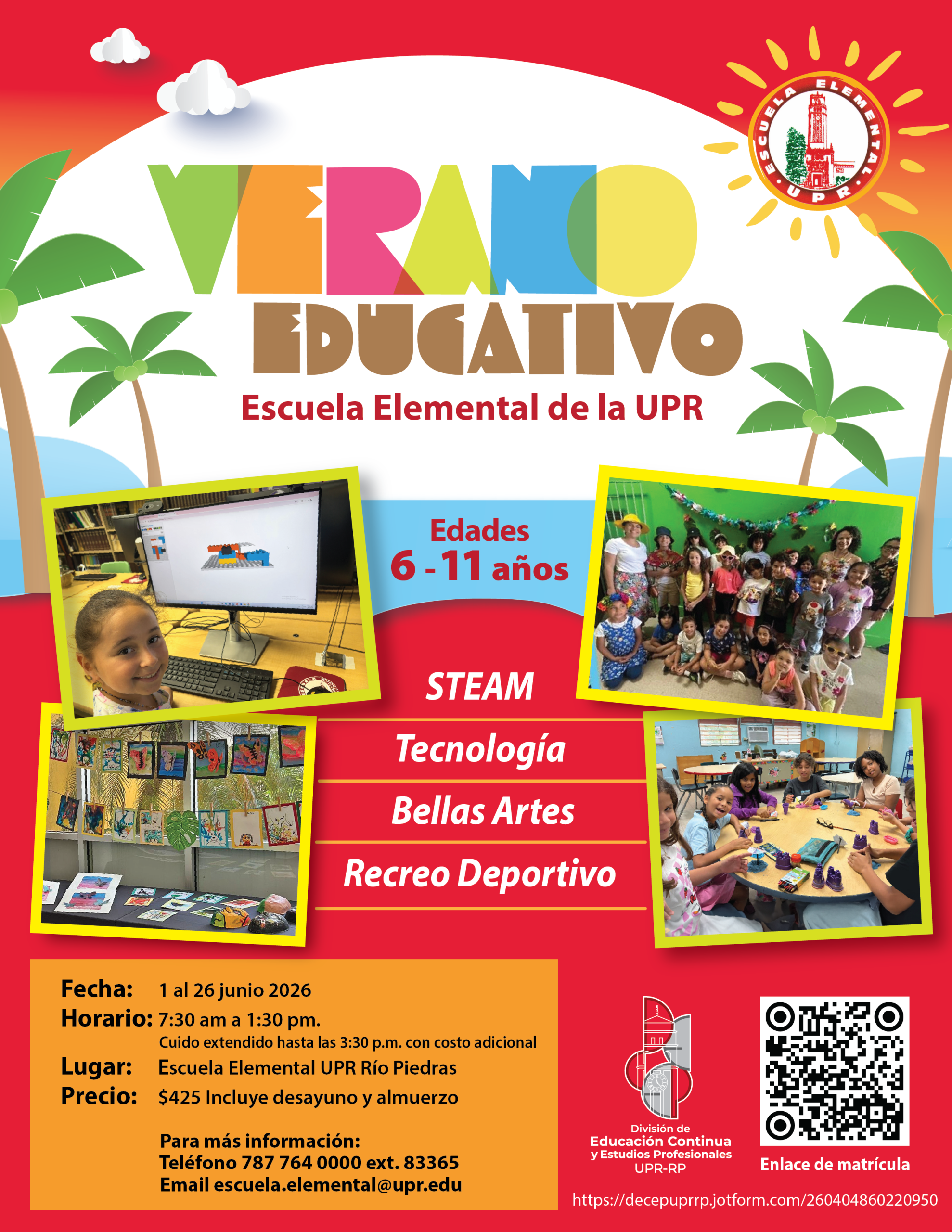 Verano Educativo en la Escuela Elemental de la UPR ofrece actividades educativas enfocadas en el área de las Bellas Artes, la Tecnología, las Ciencias y el Deporte con el propósito de desarrollar en los participantes destrezas útiles y de convivencia sana como forma de comunicación universal.
